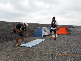 買い出しを済ませ、予定より早く堤防に渡った。