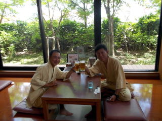 いつもの様に温泉センターで汗を流し、昼食を取りながら乾杯。