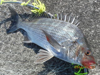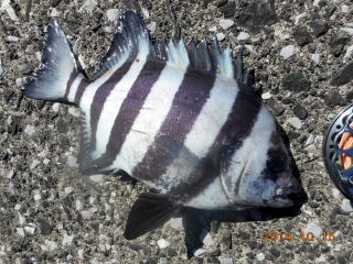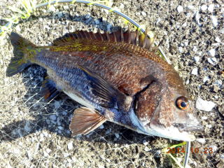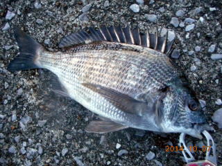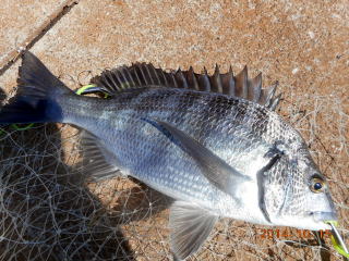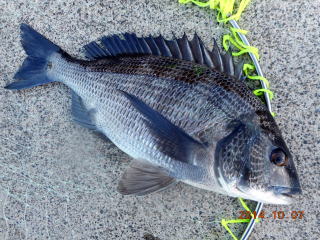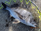 やっと喰った黒鯛に喜んだが、やはり水面でサヨナラ〜となってしまった。