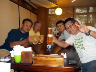 17:00ホテルにチェックイン、カッパ等を乾かしたりして、19:00から小宴会