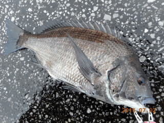仮眠をとって4時頃から再開、直ぐにまた真鯛37cm、36cm、コロダイ34cm