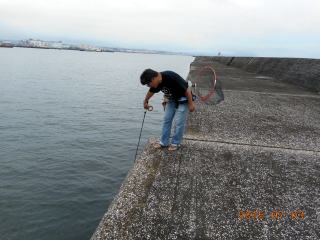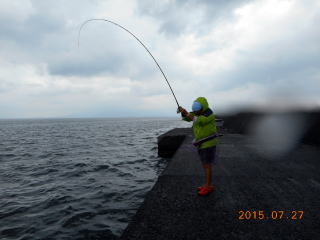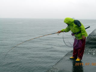更に同様のサイズを釣り上げたが、針を外した時に暴れ、そのまま海にドボン。
