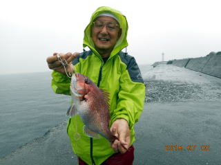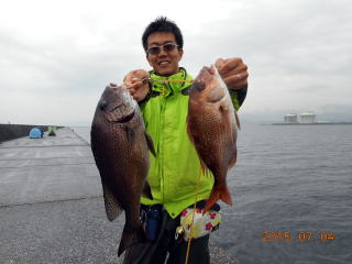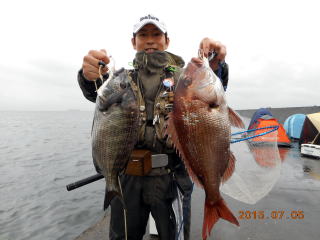吉田さんが、真鯛1枚と黒鯛1枚。