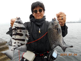 金子さんがコロダイ1枚と黒鯛1枚。