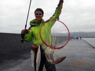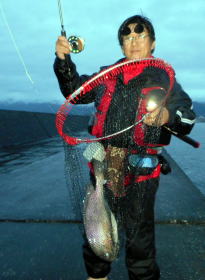 開始し、やっと浮かせて萎えた腕で力を振り絞ってタモを出したが、魚が大きす