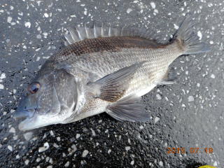 堀江さんは苦労して漸く黒鯛1枚Get。