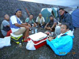 低そうなので、年配者(神崎、金子、堀江、大久保)と吉田Jrは夜釣りは断念