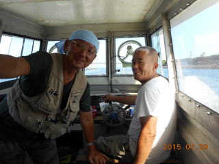 翌朝、小雨の中、朝一の船で渡ると、夜の修行に耐えたKeruzoさんが出迎え