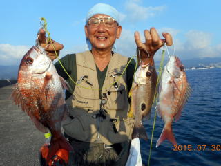 Keruzoさんが真鯛1枚とコロダイ1枚と黒鯛1枚。