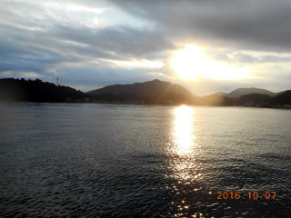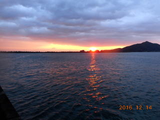 朝日が眩しく昇る中、T港から開始。