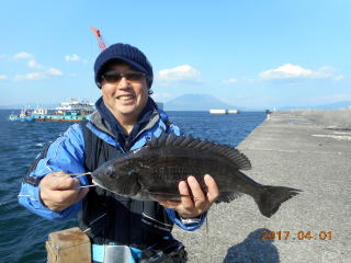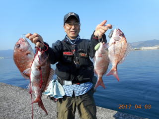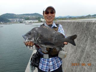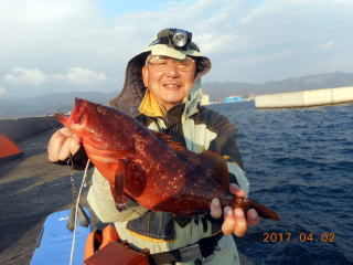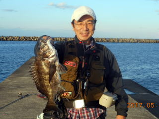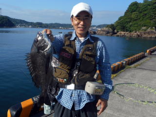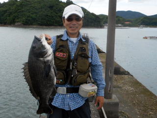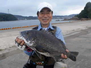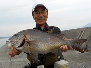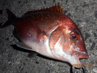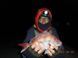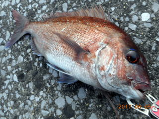基地付近に戻ってくると登坂さんが真鯛をGetしていた。