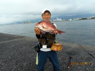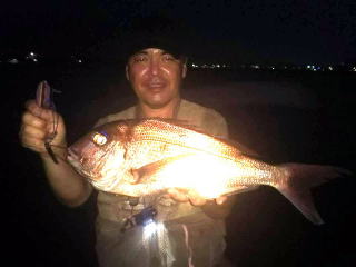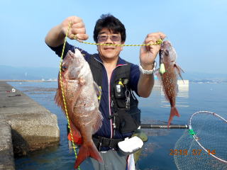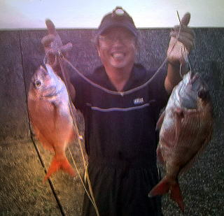 横尾さんが真鯛1枚、コロダイ1枚、ヘダイ1、バラシ1回!