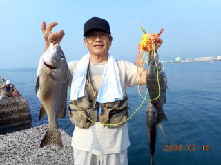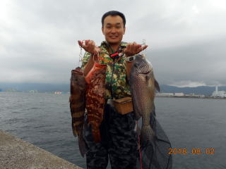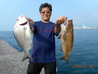 Keruzoさんが黒鯛3枚、ヘダイ1枚、ハタ1尾(45cm)。