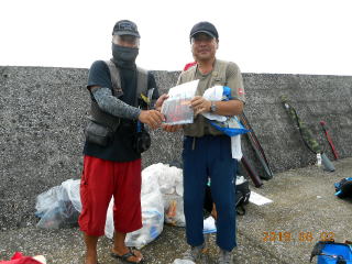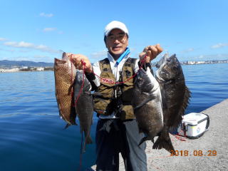 吉田Jr.さんが黒鯛3枚、石垣鯛1枚、ハタ1尾。