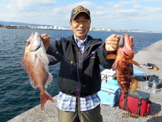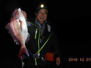 お稲荷長友氏も真鯛をGet、イカも1杯追加していた。