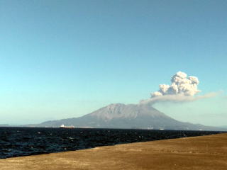 そのうちに桜島が噴煙をあげた、この風景も見慣れたが最