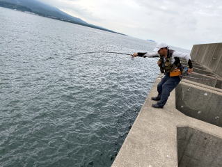 竿は大きく弧を描き魚はと良い力で沖に走った。