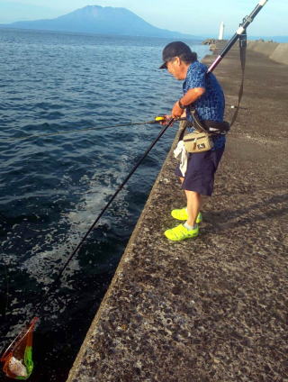 導流堤に2人、沖堤防灯台に4人、そして私達は真ん