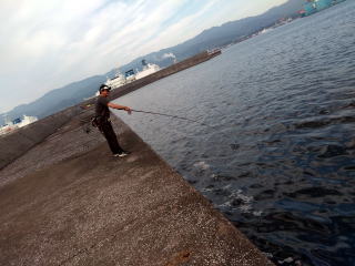 港でゆっくり準備をして今回は短い方の堤防に渡った。