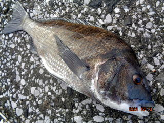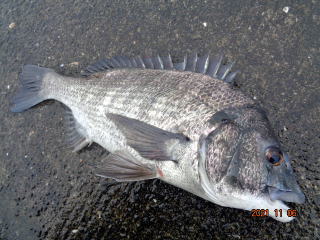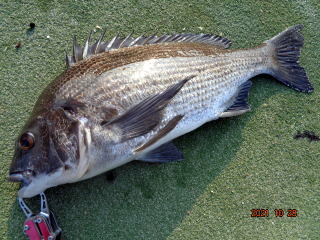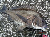 結果は、黒鯛14枚とヘダイ13枚、キビレ1枚だった。