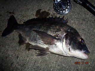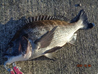 アタリがあって44cm、45cm、40cm、40cmの黒鯛