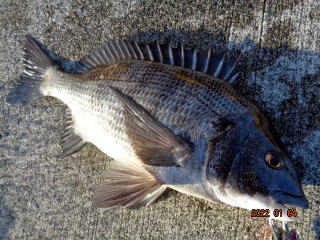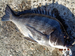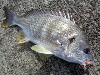 掛かったが軽い~直ぐに上がって来たのは黒鯛31cmだっ