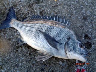 一往復して基地に戻ると荒木さんが黒鯛をGetしていた!