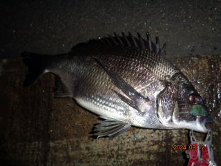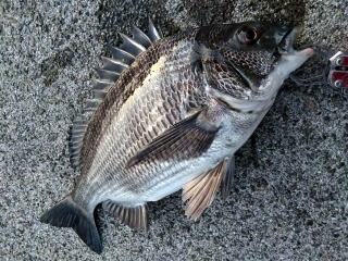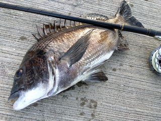 取り込んだのはスリムな黒鯛(45cm)だった。