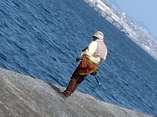 堤防には北西の風が吹き付け、潮も高くて良い感じ!