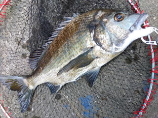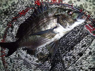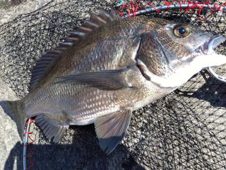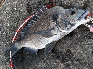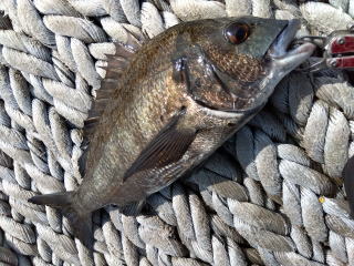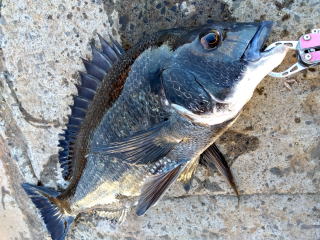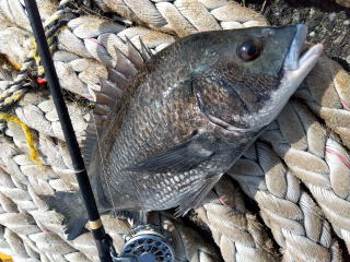フーフー言いながら浮かせたのは黒鯛、しかしそんなに大きく