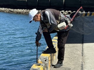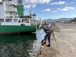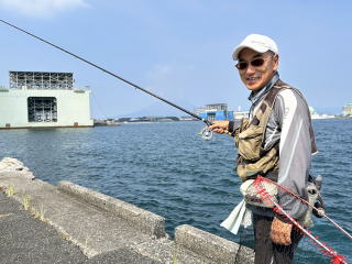 1枚釣れて一安心、次の場所へ移動すると空の生簀の下に