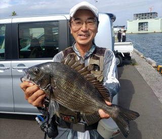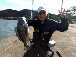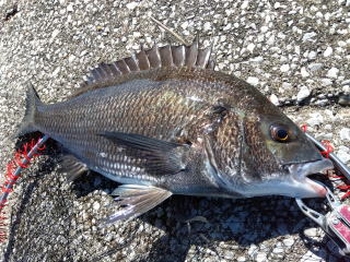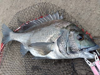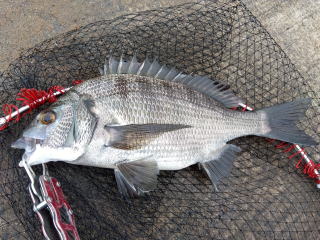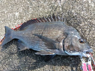 47cm、満足サイズの黒鯛だった。