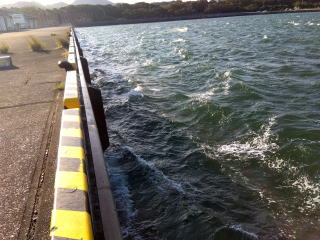 ならばと棚狙いに変更して進むと沖を通った船の波が当た