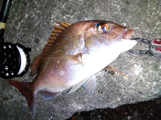 何かな~と、浮いて来たのは43cmの真鯛だった。