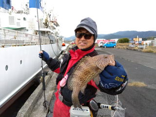 きたのは30cmの茶色マルハタだった。