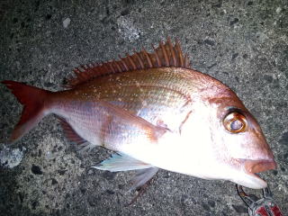 すると漸く浮いて来たのは真鯛、しかもデカい!!!