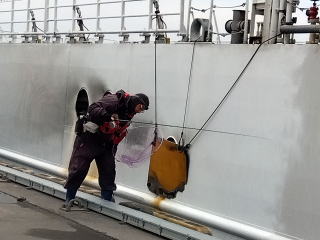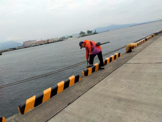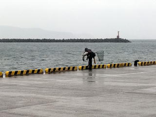 意気揚々と出発、前回と同様、K港で雨具を装備してT港へ。