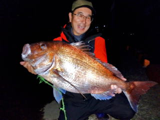 1枚釣ってホッと一安心、次の場所に移動して大型の真鯛と