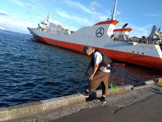 途中で買い出しを済ませ、まずはいつもの港で仕掛けを作って