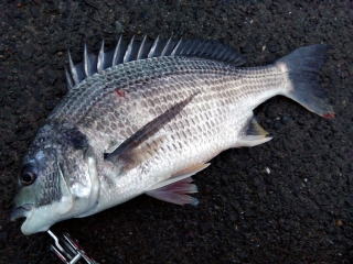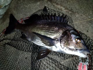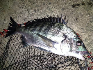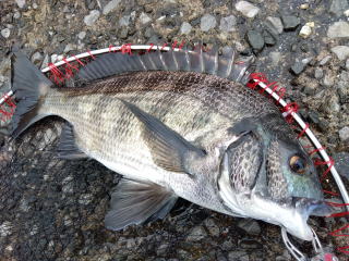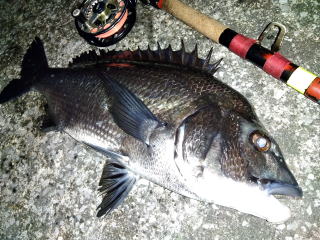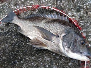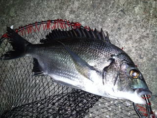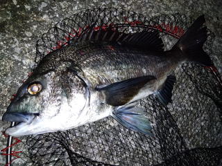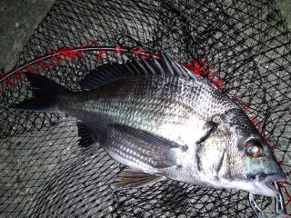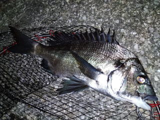 ロープをかわして取り込んだのは38cmの黒鯛だった。
