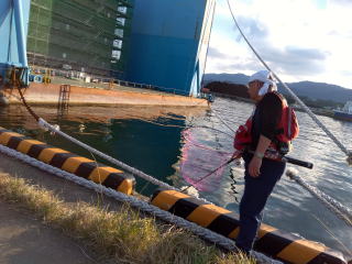 やや人が多かった北側岸壁に小移動して進むと糸が左にすぅ